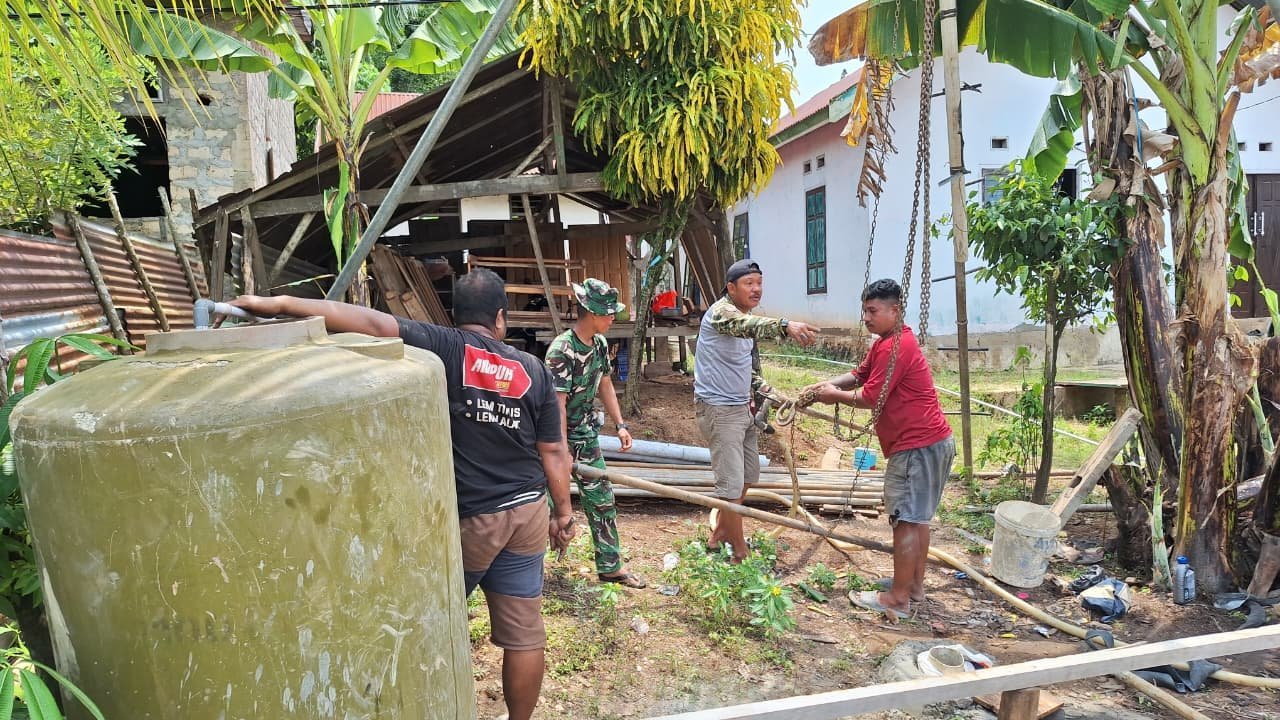 Gotong Royong TNI-Rakyat Percepat Pembangunan Sumber Air Bersih di Anggoeya