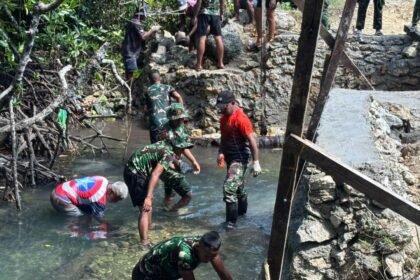 KENDARI – Semangat kebersamaan kembali terlihat di lokasi TMMD ke-127 wilayah Sambuli. Personel dari Kodim 1417/Kendari bersama masyarakat bahu-membahu menggarap pengecoran pagar pengaman jembatan, Mi...