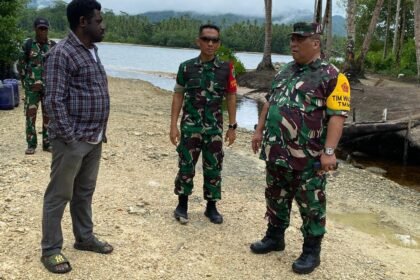 Kaimana – Ketua Tim Wasev TMMD, Joni Triman Hasibuan bersama Mayor Inf Hilam Rido melakukan pengecekan langsung sasaran fisik pembukaan jalan dalam program TMMD 127 Kodim 1804/Kaimana di Kampung Marsi...