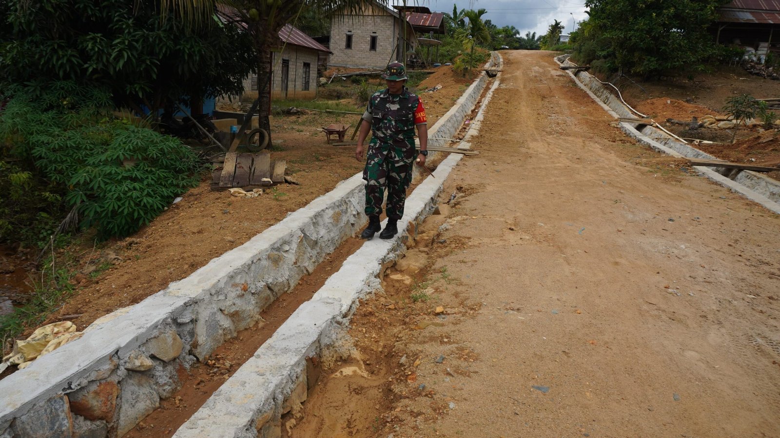 Kotawaringin Timur – Komandan Satuan Tugas (Dansatgas) TMMD ke-127 Kodim 1015/Sampit, Letkol Inf Dwi Candra Setyawan, melakukan peninjauan langsung terhadap pengerjaan siring jalan yang menjadi salah satu sasaran fisik program TNI Manunggal Membangun Desa (TMMD) di Desa Tri Buana, Kecamatan Telaga Antang, Kabupaten Kotawaringin Timur, Sabtu (07/03/2026).