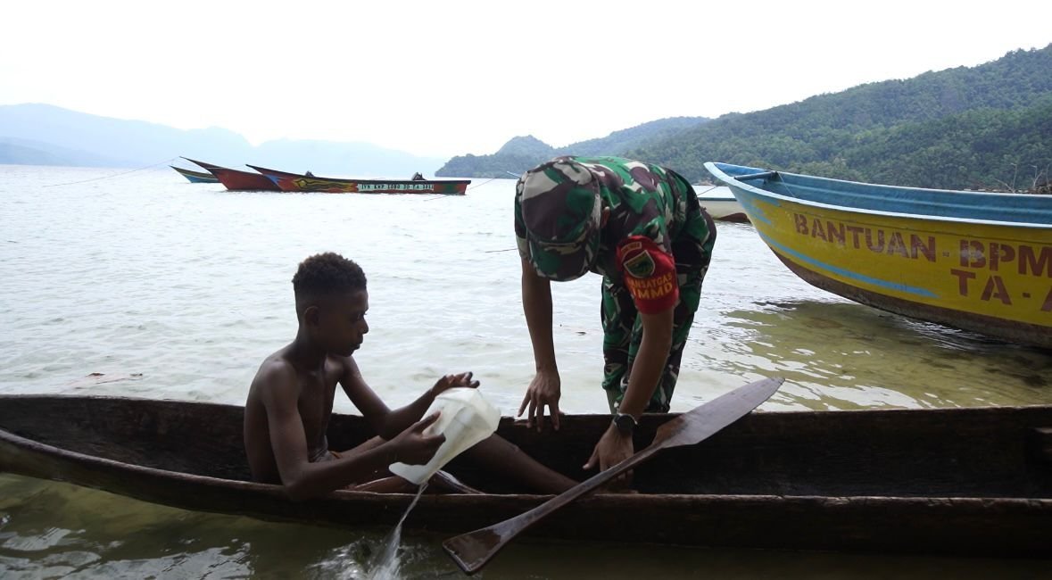 Melalui pendekatan yang humanis ini, Satgas TMMD berupaya menanamkan kesadaran keselamatan sejak dini kepada anak-anak agar selalu menjaga keselamatan diri saat beraktivitas di laut.