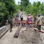 Pemasangan balok dan kayu merupakan tahap krusial karena menjadi kerangka penopang utama sebelum jembatan difungsikan. Ketelitian dan kekompakan tim di lapangan menjadi kunci agar konstruksi memiliki daya tahan yang kuat.
