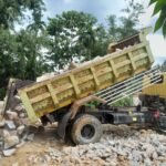 Semangat kerja para pengemudi truk dan tim lapangan mencerminkan dedikasi tinggi dalam mendukung pembangunan infrastruktur desa.