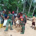 KENDARI – Semangat pengabdian kembali ditunjukkan personel Satgas TMMD ke-127 Kodim 1417/Kendari saat tetap bekerja meski diguyur hujan ringan, Sabtu (28/2).