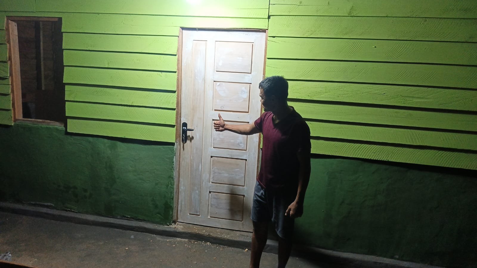 Personel Satgas bersama warga bahu-membahu menyelesaikan berbagai tahapan pembangunan rumah bagi masyarakat, termasuk pemasangan pintu yang menjadi simbol penyempurnaan hunian.