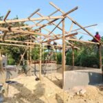 Meski bekerja di bawah terik matahari, proses pemasangan dilakukan dengan penuh ketelitian untuk memastikan struktur bangunan tetap kokoh dan aman dalam jangka panjang.