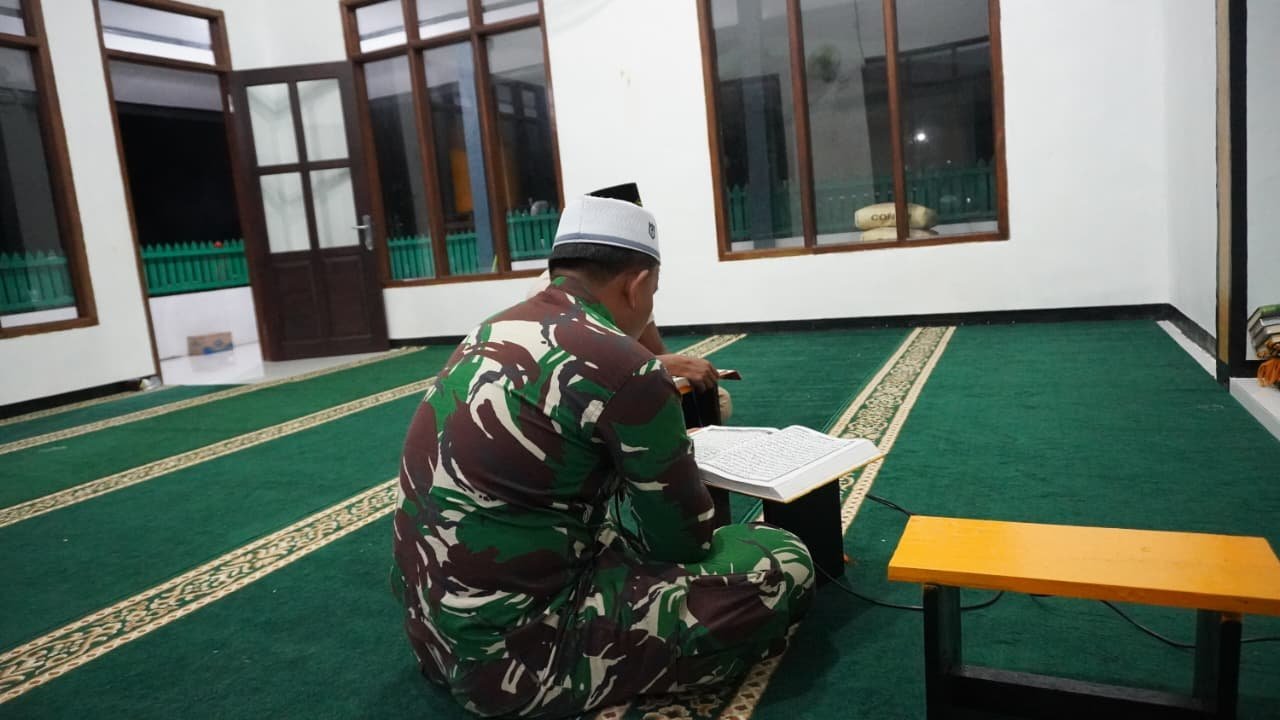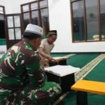 Duduk bersila di lantai mushola, anggota Satgas TMMD dan masyarakat bergantian membaca ayat suci Al-Qur’an. Kebersamaan itu berlangsung hangat tanpa sekat, mencerminkan kemanunggalan TNI dan rakyat dalam suasana penuh kekeluargaan.
