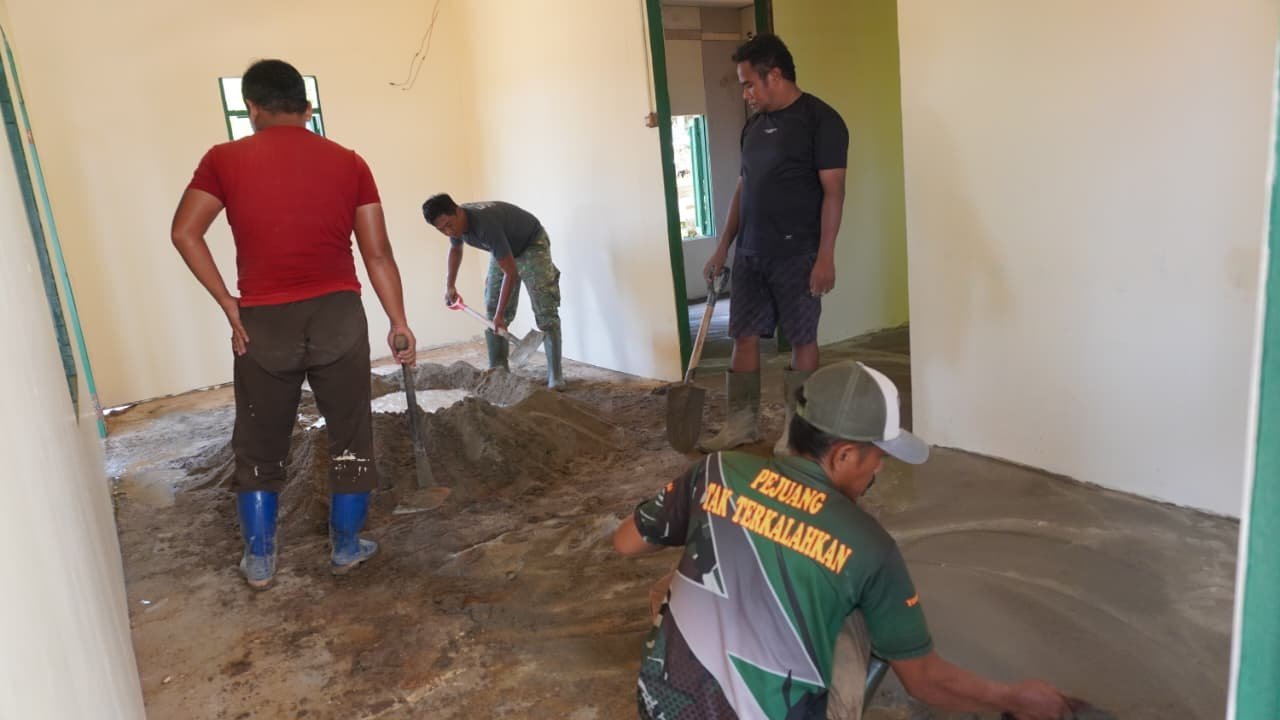Kotawaringin Timur – Kebahagiaan mulai terpancar dari keluarga Bapak Sumardi seiring progres rehabilitasi rumahnya yang kini hampir rampung. Program TMMD Reguler ke-127 Kodim 1015/Sampit terus mengakselerasi pengerjaan, dengan fokus pada tahap plester lantai sebagai bagian finishing bangunan, Senin (02/03/2026).
