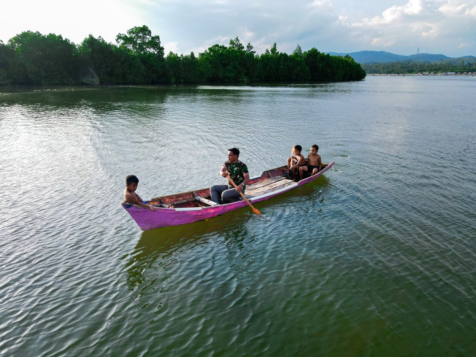 Sambil mendayung perahu dan berfoto bersama dengan penuh semangat, kebersamaan tersebut menjadi simbol nyata kemanunggalan TNI dengan rakyat.