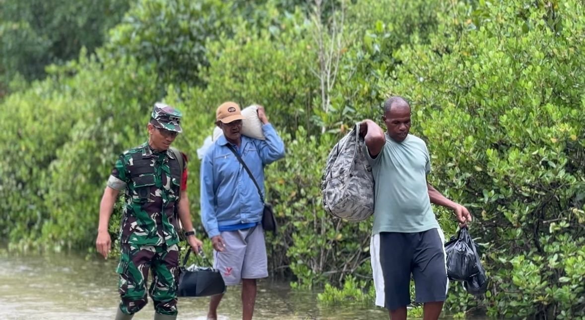 Dalam kesempatan tersebut, Dandim tampak berjalan bersama masyarakat menyusuri wilayah pesisir kampung. Kebersamaan itu bukan sekadar simbolis, melainkan cerminan nyata bahwa TNI hadir dan hidup berdampingan dengan rakyat.