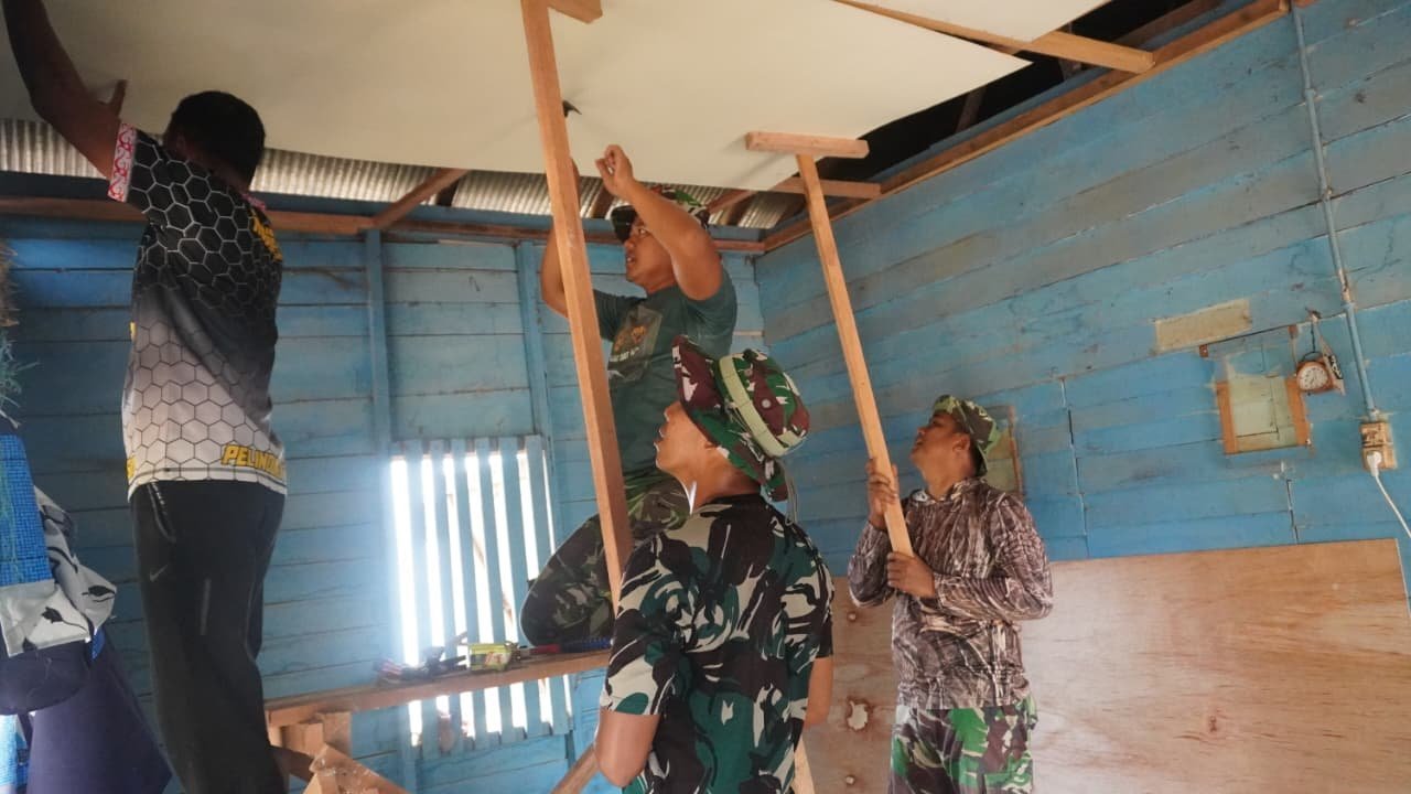 Ia menambahkan, pemasangan plafon dikerjakan bersama masyarakat guna mempercepat penyelesaian seluruh target pembangunan RTLH dalam program TMMD ke-127.