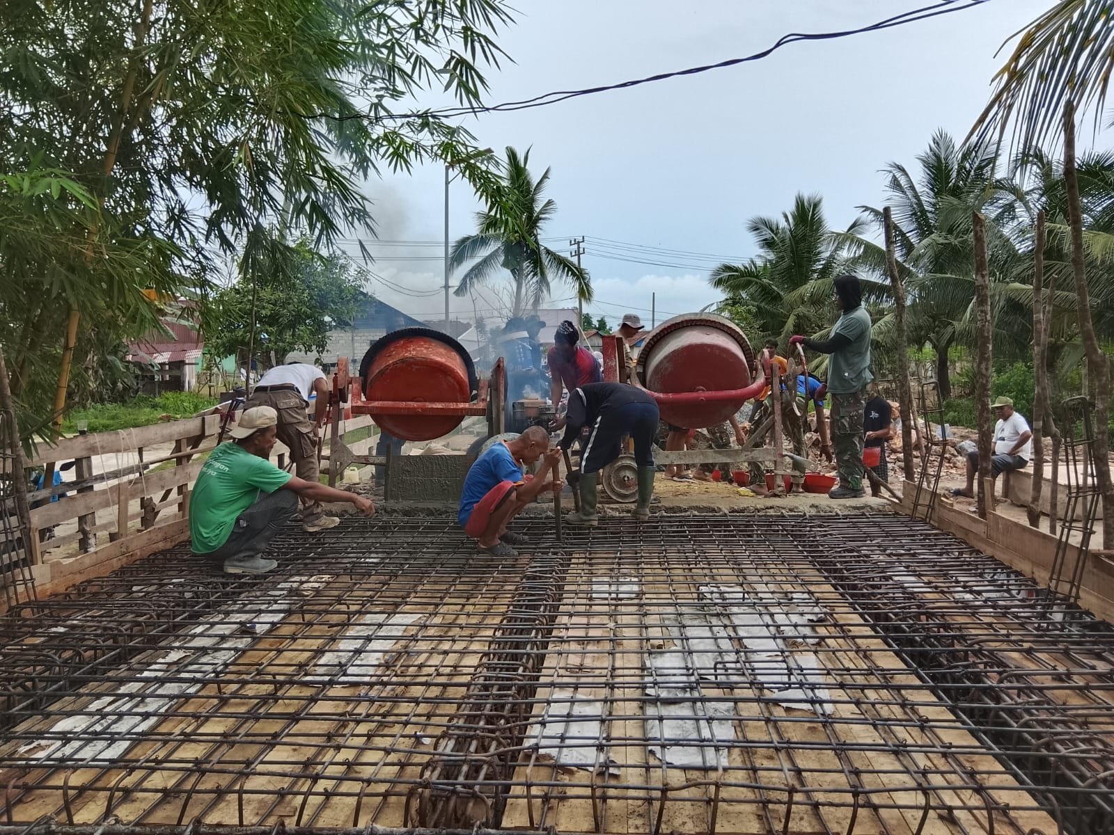 Pengerjaan dilakukan secara bertahap dan terukur agar hasil konstruksi kokoh serta tahan lama dalam menunjang aktivitas masyarakat.
