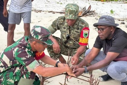 Kaimana – Komandan Satuan Tugas (Dansatgas) TNI Manunggal Membangun Desa (TMMD) ke-127 Kodim 1804/Kaimana, Letkol Kav Sulistyo Nugroho, melaksanakan kegiatan non fisik berupa transplantasi terumbu kar...