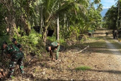 Kaimana – Personel Satgas TNI Manunggal Membangun Desa (TMMD) ke-127 dari Kodim 1804/Kaimana melaksanakan kegiatan finishing pembukaan jalan di Kampung Marsi, Distrik Kaimana, Kabupaten Kaimana, Kamis...