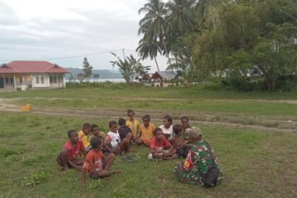 Kaimana – Di sela-sela kegiatan pembangunan jembatan dalam program TNI Manunggal Membangun Desa (TMMD) ke-127, personel Satgas Kodim 1804/Kaimana memanfaatkan waktu istirahat untuk menjalin kedekatan ...