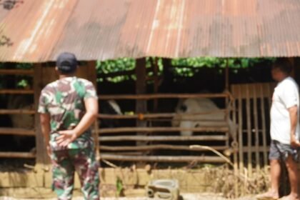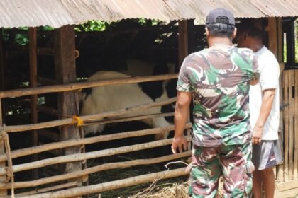 Kotawaringin Timur – Kunjungan Pratu Ramli, anggota Satgas TMMD Reguler ke-127 Kodim 1015/Sampit ke kediaman Bapak Sutarman, peternak kambing Desa Tri Buana, Kamis (05/03/2026), menghadirkan suasana h...