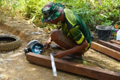 Kotawaringin Timur – Kedekatan antara Satgas TMMD Reguler ke-127 Kodim 1015/Sampit dengan masyarakat terlihat nyata saat pengerjaan Rumah Tidak Layak Huni (RTLH) di Desa Tri Buana, Kecamatan Telaga An...