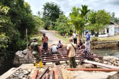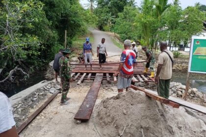 Kaimana – Pembangunan jembatan dalam program TMMD ke-127 yang dilaksanakan oleh Kodim 1804/Kaimana terus berjalan. Pada Rabu (04/03/2026), Satgas TMMD melaksanakan kegiatan pemasangan balok dan kayu s...