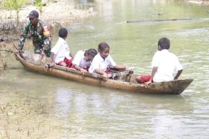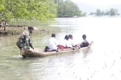 Kaimana – Wujud kepedulian terhadap pendidikan kembali ditunjukkan Satgas TMMD 127 Kodim 1804/Kaimana melalui kegiatan kemanusiaan dengan mengantar anak-anak dari Kampung Marsi menuju Kampung Sisir un...