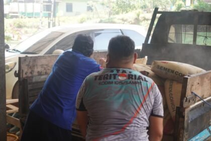 Kotawaringin Timur – Kebersamaan antara anggota Satgas TMMD Reguler ke-127 Kodim 1015/Sampit dan masyarakat kembali terlihat dalam kegiatan pengangkutan material semen untuk pembangunan MCK di Desa Tr...