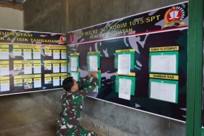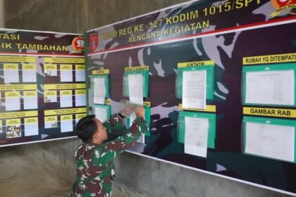 Kotawaringin Timur – Untuk memastikan seluruh program berjalan sesuai rencana, Satgas TMMD Reguler ke-127 Kodim 1015/Sampit rutin melakukan pembaruan data capaian kegiatan di Posko TMMD Desa Tri Buana...