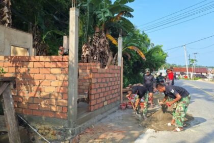 Kendari – Satgas TMMD ke-127 Kodim 1417/Kendari bersama warga terus memacu pengerjaan MCK di Kelurahan Sambuli, Rabu (25/2). Fokus utama saat ini adalah memperkuat struktur bangunan sebelum masuk taha...