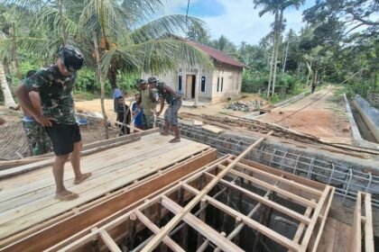Kendari – Personel Satgas TNI Manunggal Membangun Desa (TMMD) ke-127 Kodim 1417/Kendari terus memacu progres pembangunan jembatan di Kelurahan Sambuli, Kota Kendari, Rabu (25/2). Pada tahap terkini, p...