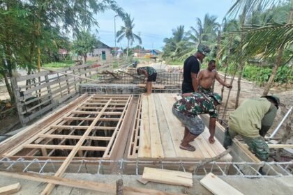 Kendari – Semangat kemanunggalan TNI dan rakyat tampak nyata di lokasi pembangunan jembatan Kelurahan Sambuli, Rabu (25/2), saat personel Satgas TMMD 127 Kodim 1417/Kendari bersama warga menyiapkan be...