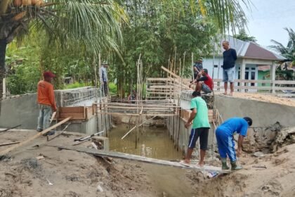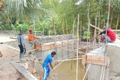 Kendari – Pengerjaan jembatan dalam program TMMD ke-127 Kodim 1417/Kendari memasuki tahap krusial di Kelurahan Sambuli, Minggu (22/2). Personel Satgas bersama warga setempat terlihat teliti merakit da...