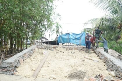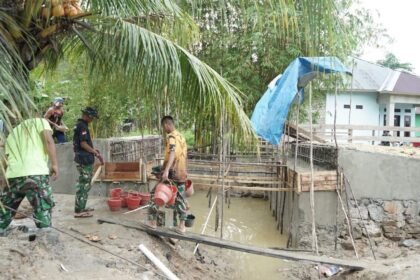 Kendari – Personel Satgas TMMD ke-127 Kodim 1417/Kendari terus memacu pengerjaan pengecoran balok lantai jembatan di Kelurahan Sambuli meski dihadapkan pada kondisi medan yang licin dan cukup berat, M...