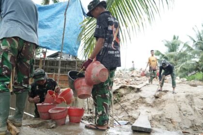 Kendari – Meski bertepatan dengan hari libur, Satgas TMMD ke-127 Kodim 1417/Kendari tetap menunjukkan komitmennya dalam menuntaskan sasaran fisik RTLH di Kelurahan Petoaha, Minggu (22/2). Personel TNI...