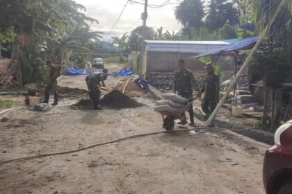 Kendari – Dinamika pengerjaan program TMMD ke-127 di Kelurahan Sambuli terus berlangsung meski kondisi tanah yang licin menjadi tantangan tersendiri bagi personel Satgas Kodim 1417/Kendari, Minggu (22...