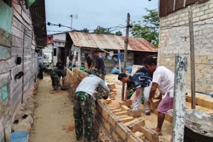 Kendari – Program Rehabilitasi Rumah Tidak Layak Huni (RTLH) TMMD ke-127 Kodim 1417/Kendari membawa harapan baru bagi Ibu Momi, warga Kelurahan Petoaha, Sabtu (21/2). Pada tahap terbaru, personel Satg...