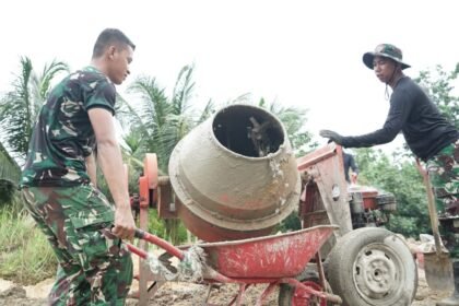 Kendari – Ketelitian anggota Satgas TMMD 127 terlihat jelas saat merakit besi tiang cor sebagai bagian pembangunan sarana masyarakat, Rabu (18/2). Kemampuan teknis yang dimiliki prajurit menjadi bukti...