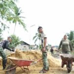 KENDARI – Komitmen membuka keterisolasian wilayah kembali dibuktikan Satgas TMMD ke-127 Kodim 1417/Kendari melalui pengerjaan penimbunan jalan jembatan di Kelurahan Sambuli, Selasa (3/3).