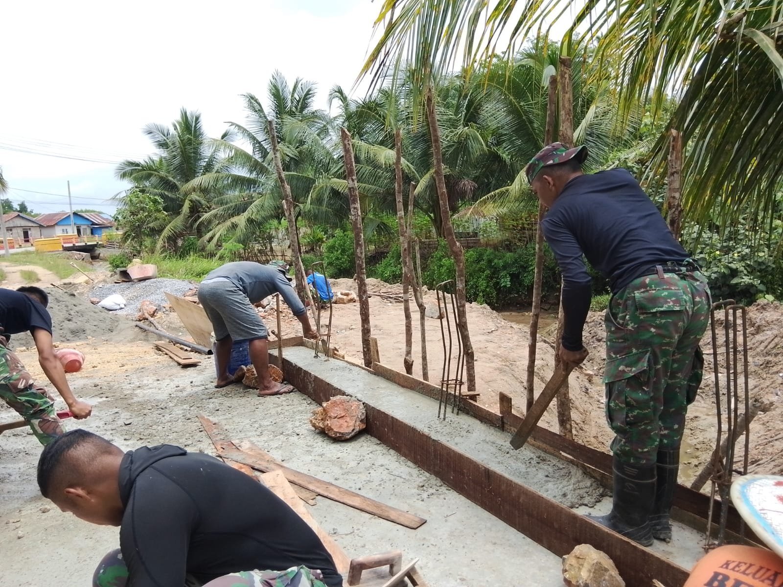 Semangat gotong royong antara prajurit dan masyarakat pun semakin mempercepat proses pembangunan di lapangan.