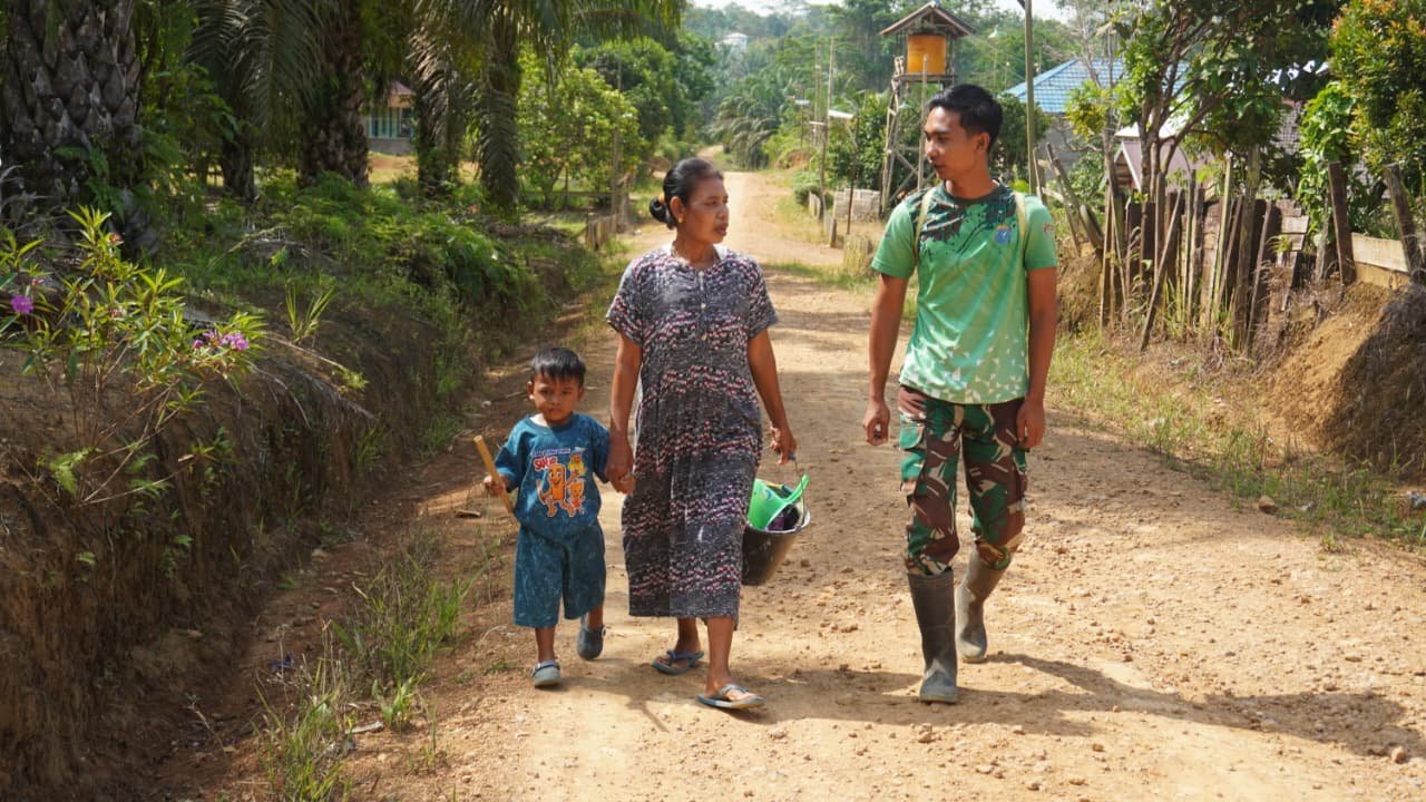 Kotawaringin Timur – Program TMMD Reguler ke-127 Kodim 1015/Sampit tidak hanya fokus pada pembangunan fisik, tetapi juga menekankan kedekatan dengan warga. Hal ini terlihat saat seorang anggota Satgas membantu ibu-ibu yang membawa tas Lanjung melewati lokasi pembangunan Rumah Tidak Layak Huni, Kamis (05/03/2026).