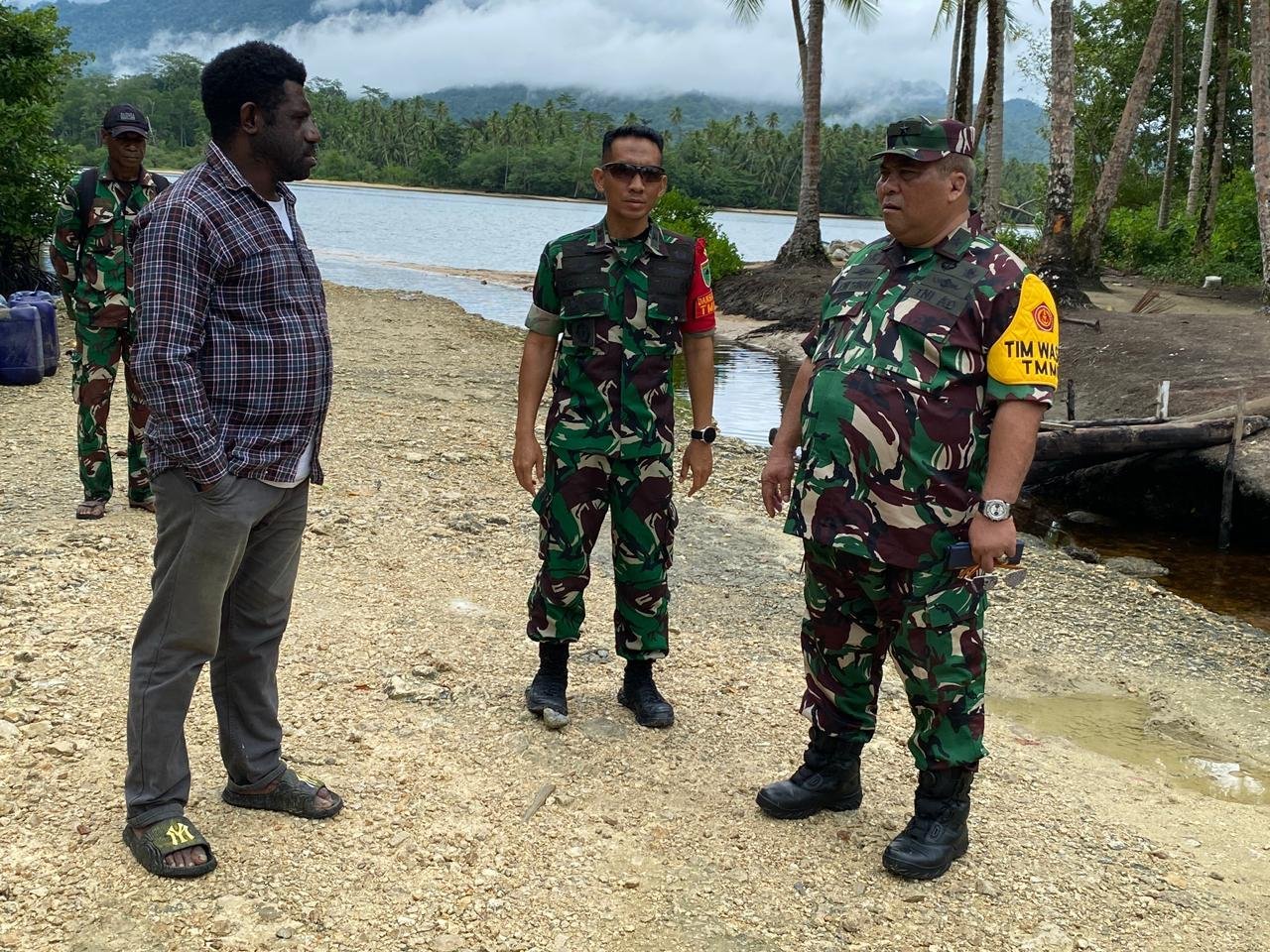 Rombongan peninjau didampingi Kepala Kampung Marsi Roni Jaisona, Kasrem 182/JO Letkol Inf Eko Handono, Dandim 1804/Kaimana Letkol Kav Sulistyo Nugroho, Wadan Satgas Kapten Inf Leonard Sahulata, serta Babinsa Kampung Marsi Sertu Daniel Ndiken.