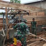 KENDARI – Personel Satgas TMMD ke-127 yang dilaksanakan oleh Kodim 1417/Kendari terus memacu pembangunan Rumah Tidak Layak Huni (RTLH) di Kelurahan Petoaha, Minggu (1/3). Fokus pengerjaan kali ini berada pada pemasangan kerangka bagian atas rumah sasaran fisik ke-4.