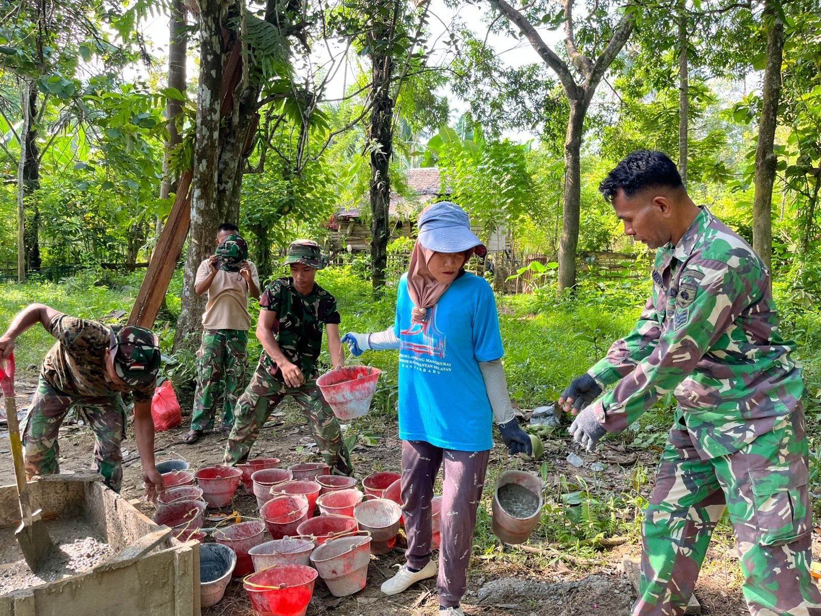 Meski mengandalkan peralatan modern, semangat gotong royong tetap menjadi fondasi utama pelaksanaan TMMD. Prajurit dan warga saling bekerja sama demi menyelesaikan setiap tahapan pembangunan.