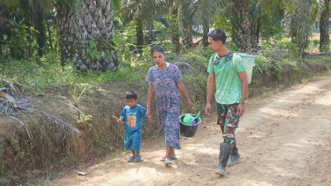 Kotawaringin Timur – Kedekatan antara Satgas TMMD Reguler ke-127 Kodim 1015/Sampit dengan masyarakat terlihat nyata saat pengerjaan Rumah Tidak Layak Huni (RTLH) di Desa Tri Buana, Kecamatan Telaga Antang, Kamis (05/03/2026). Seorang anggota Satgas menghentikan pekerjaannya untuk membantu seorang ibu yang melintas membawa tas Lanjung.