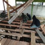 Pada tahap pengerjaan kali ini, prajurit TNI bersama warga setempat melaksanakan pemasangan gelagar sebagai penopang utama lantai rumah. Tahapan ini menjadi fondasi penting sebelum penyusunan papan lantai secara menyeluruh.