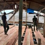 Pada titik sasaran ke-3, personel TNI bersama warga setempat terlihat kompak melanjutkan proses pendirian dinding rumah. Material bangunan disusun secara bertahap dengan penuh ketelitian guna memastikan konstruksi kokoh dan aman.