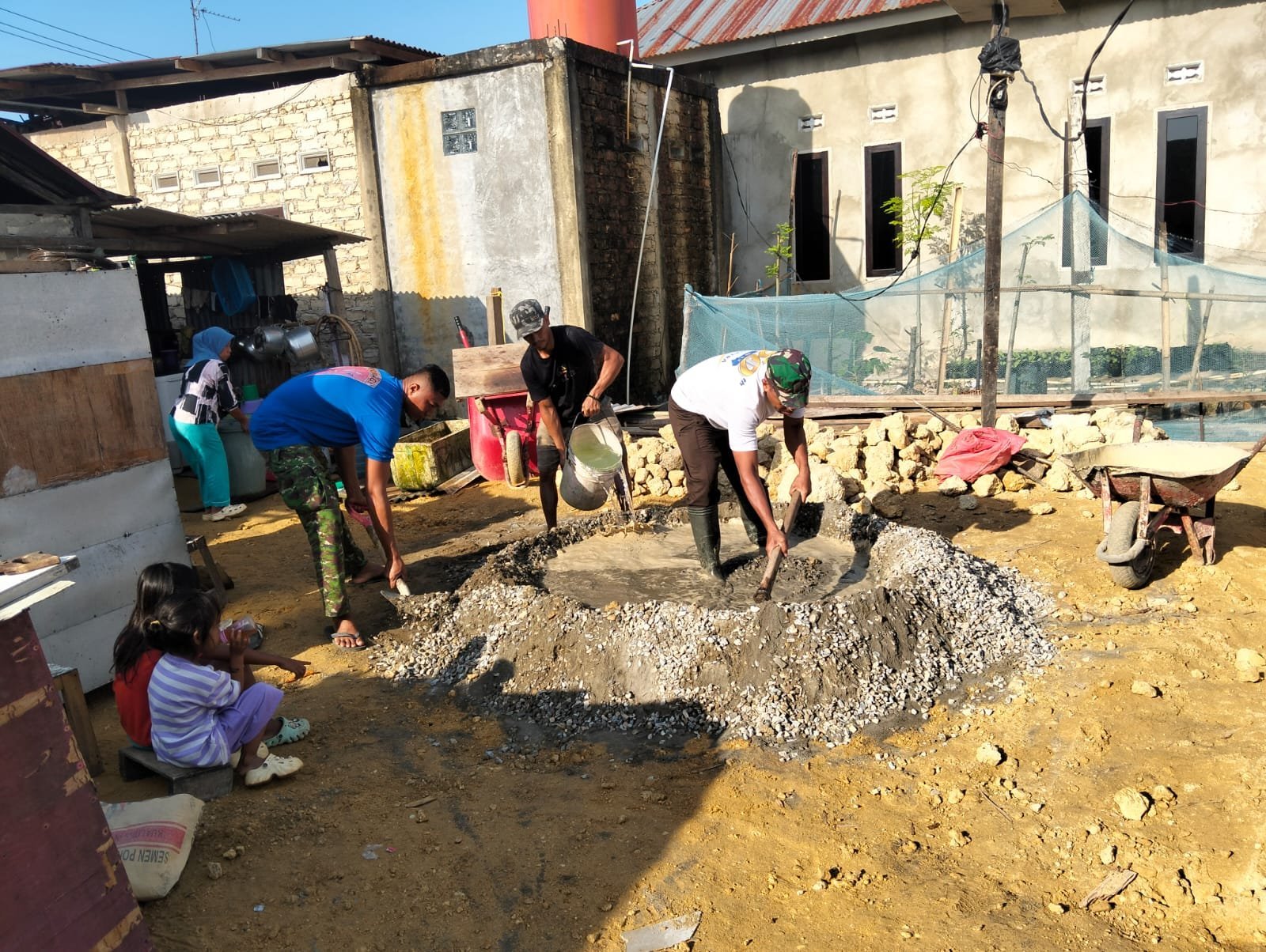 Dalam pengerjaannya, para prajurit TNI bersama warga setempat bekerja sama menyiapkan campuran beton serta memastikan proses pengecoran dilakukan dengan rapi dan sesuai standar konstruksi.