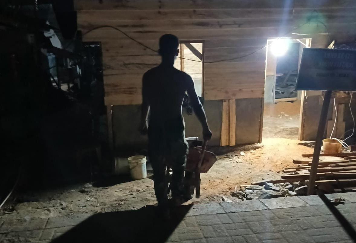 KENDARI – Personel Satgas TMMD ke-127 dari Kodim 1417/Kendari terus menunjukkan dedikasi tinggi dengan melanjutkan pengerjaan rehabilitasi Rumah Tidak Layak Huni (RTLH) meski malam telah tiba, Jumat (6/3).