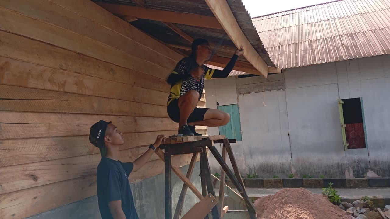 Salah satu pekerjaan yang sedang dilakukan adalah pembangunan dapur layak huni bagi warga penerima manfaat. Dalam prosesnya, personel TNI bersama masyarakat setempat bekerja sama menyelesaikan pemasangan rangka, atap, serta dinding kayu bangunan dapur.