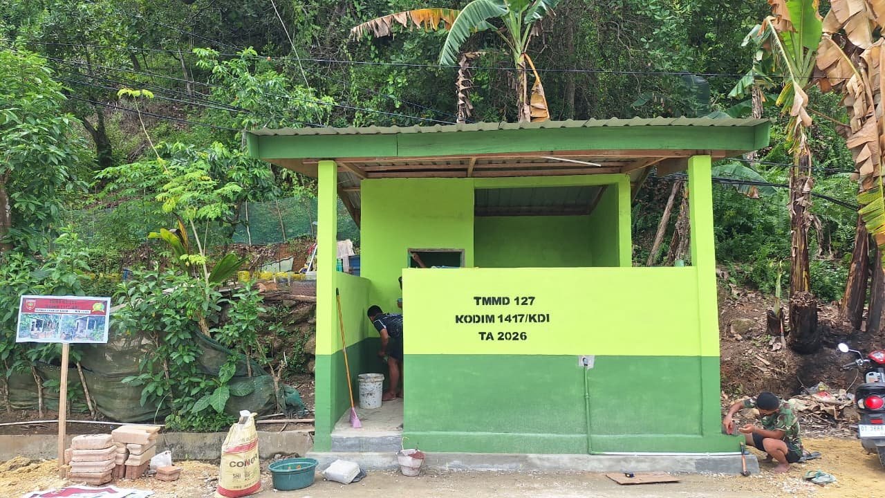 Kendari – Program TMMD ke-127 yang dilaksanakan oleh Kodim 1417/Kendari berhasil merampungkan pembangunan fasilitas Mandi, Cuci, Kakus (MCK) bagi masyarakat Kelurahan Sambuli, Kota Kendari, Rabu (11/3).