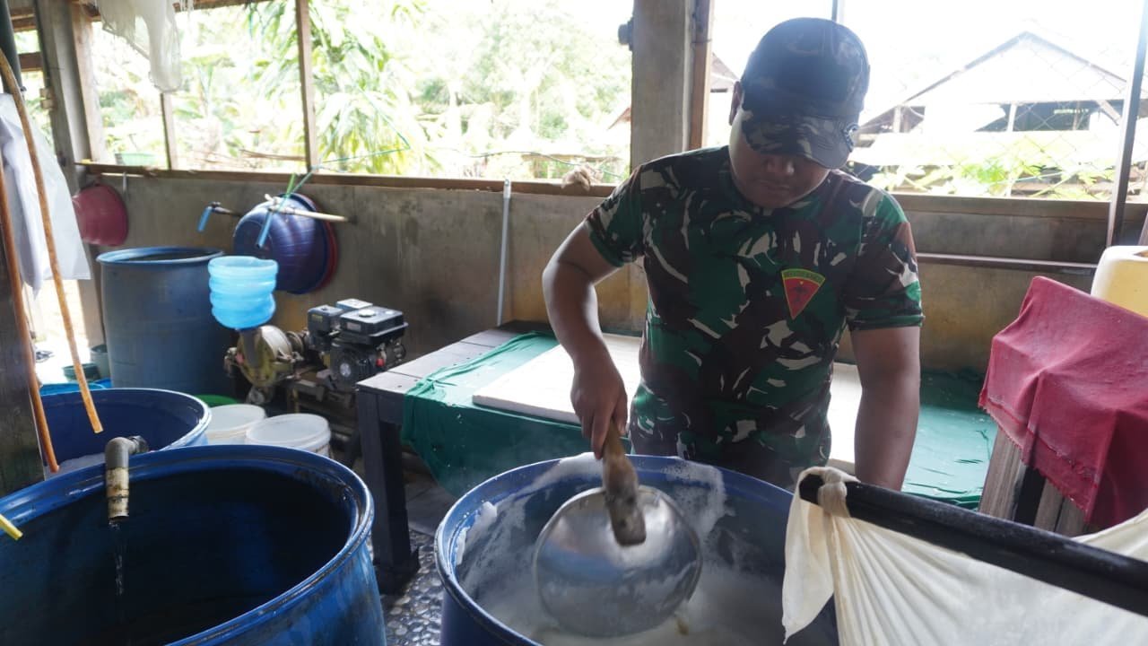 Satgas TMMD ke-127 Kodim Sampit Beri Edukasi Kebersihan pada Pengusaha Tahu Desa Tri Buana