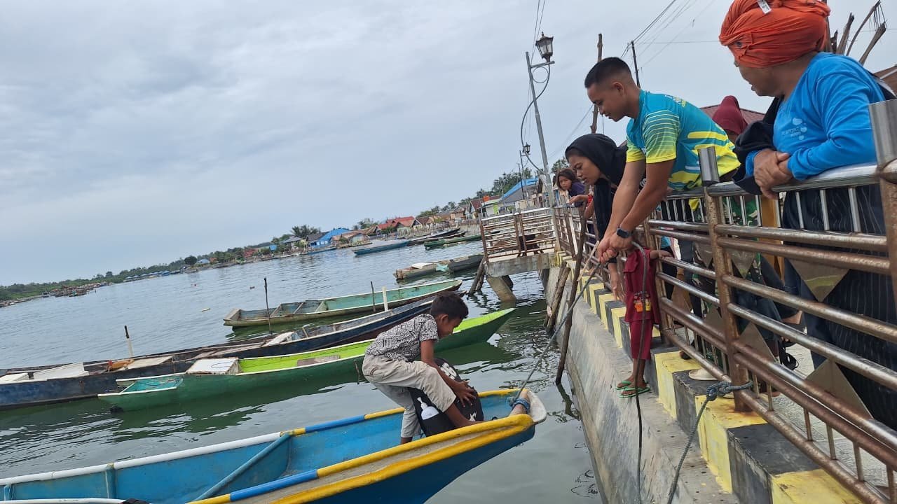 Personel TNI tampak sigap membantu masyarakat saat proses naik turun perahu di wilayah pesisir yang menjadi akses utama mobilitas warga.