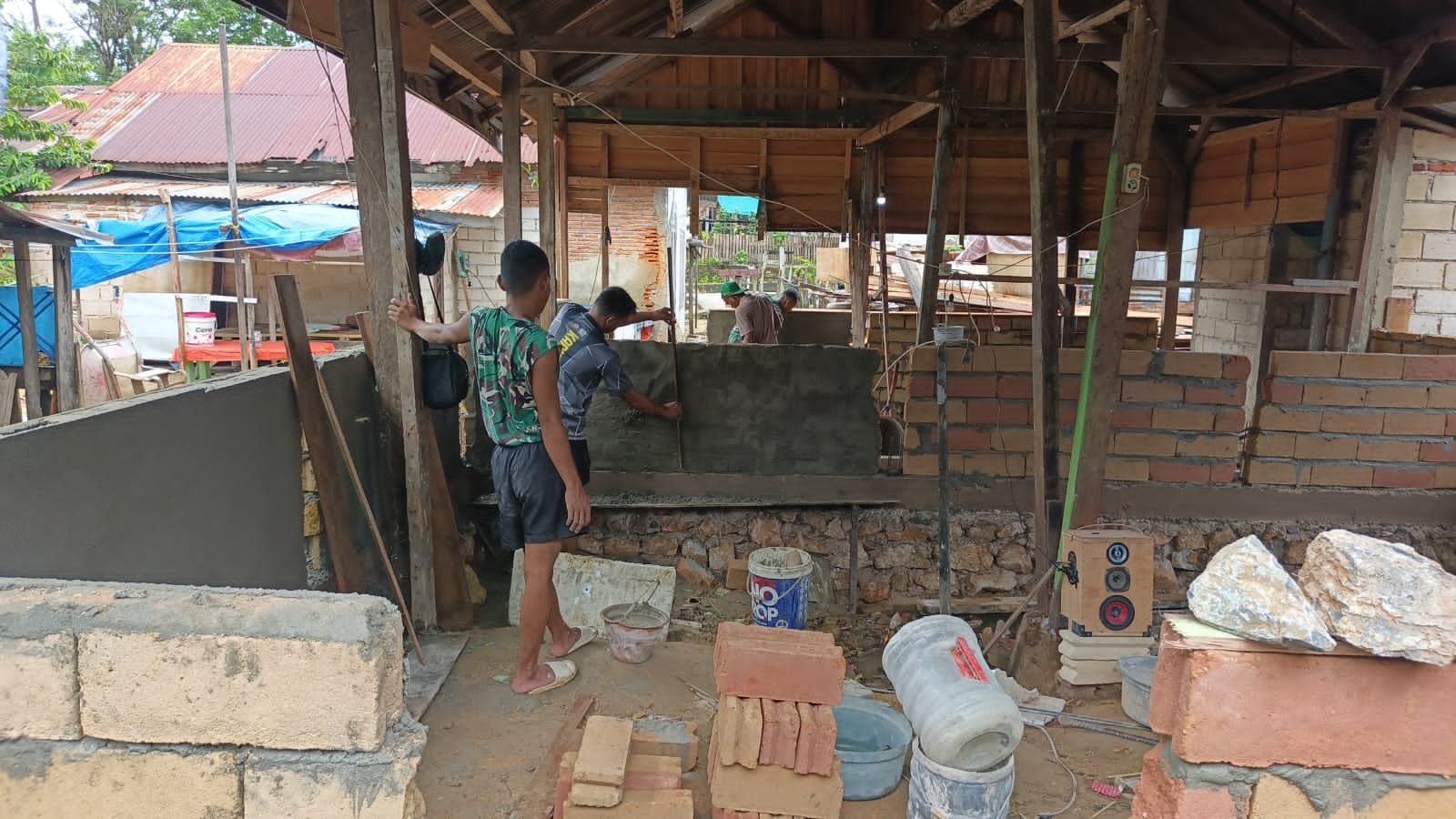 Satgas dari Kodim 1417/Kendari kini memasuki tahap plasteran dinding pada unit ke-5 sebagai bagian dari penyempurnaan struktur bangunan.